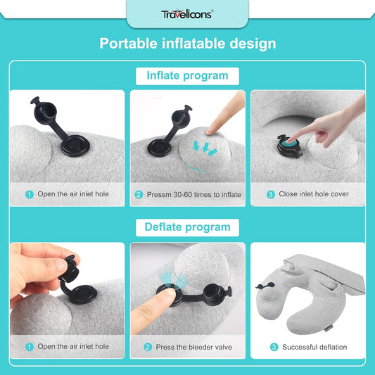 Travel Pillow for Airplane with Hood, Inflatable Neck Air Pillow for Car,Travel Accessoires Nap Rest Sleep Business Trip Flight